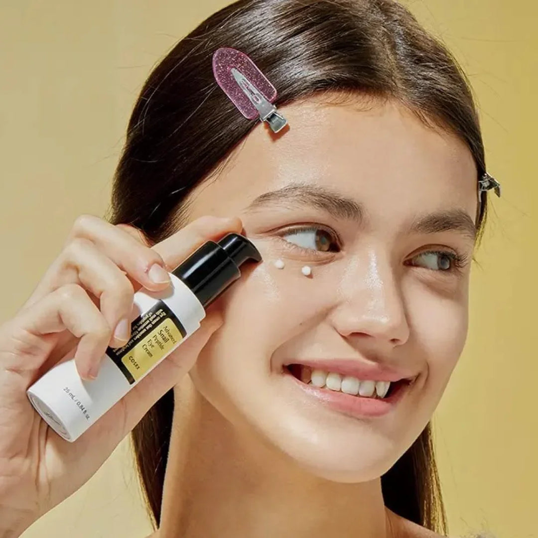 Le COSRX Advanced Snail Peptide Eye Cream est le remède à vos symptômes de fatigue! Ce soin pour le contour des yeux léger mais à double fonctionnalité illumine visiblement la zone des yeux grâce à un taux de 72% de filtrat de sécrétion de snail, 5 types de peptides et de la niacinamide. Éloignez les cernes et les poches sous les yeux pour un teint frais et reposé.