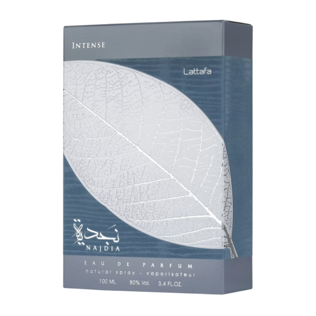 Najdia Intense (نجدية), une eau de parfum masculine signée Lattafa Perfumes, lancée en 2024. Cette fragrance incarne l'équilibre parfait entre fraicheur et intensité, ideale pour l'homme moderne en quête d'une signature olfactive distinctive.